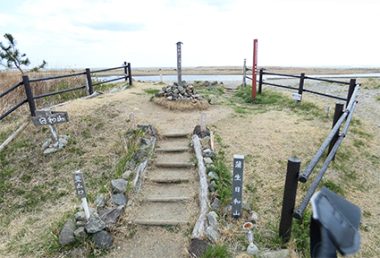干潟のひときわ目立つ場所にあったのは日本一低い日和山。山頂(標高3.0m)を示す碑がある。蒲生干潟のシンボル的存在で、ユーモラスな低山は干潟に愛着を持つ人々を元気づけてきた。